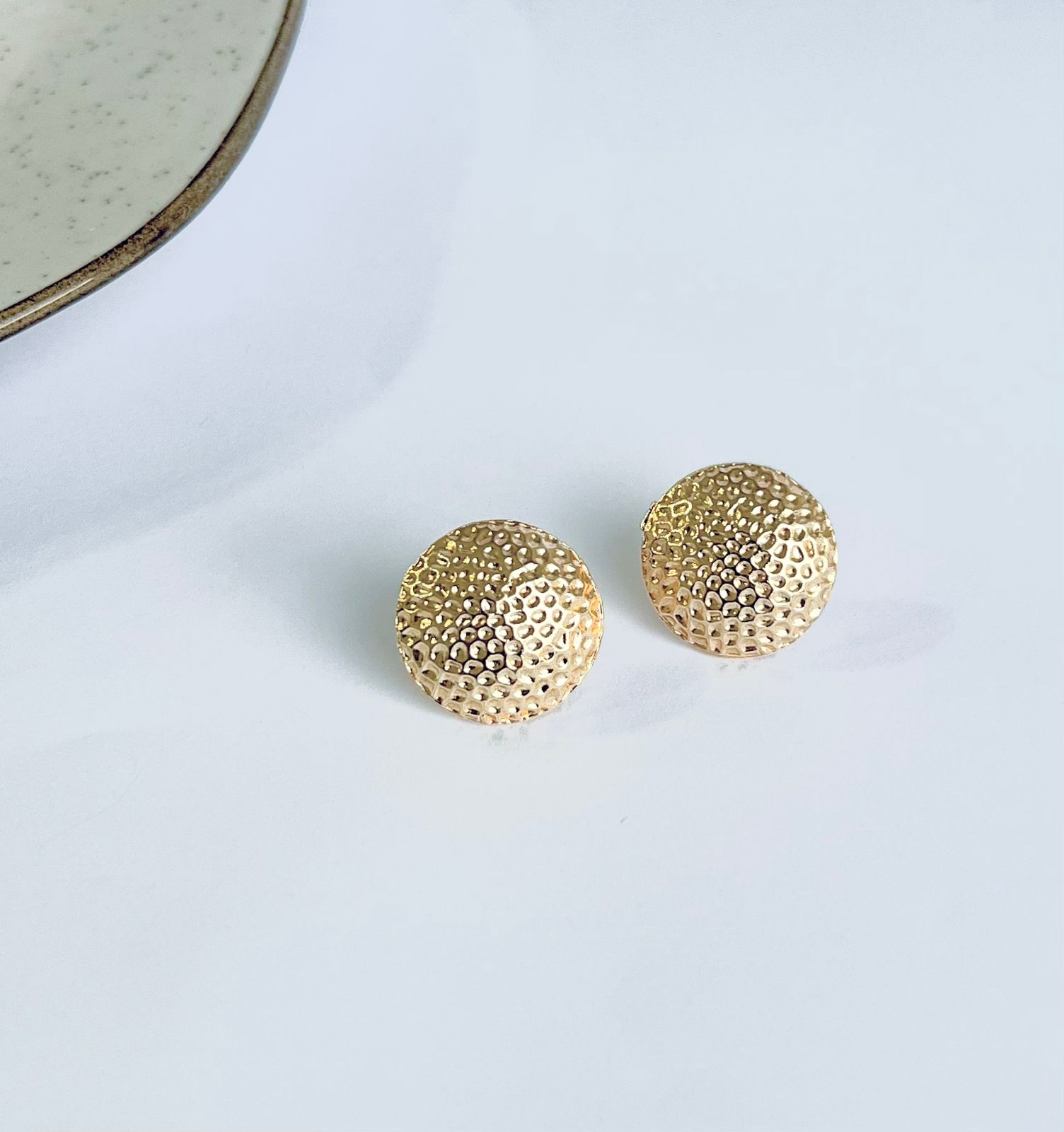 O Brinco Esfera Texturizada, banhado a ouro 18K, traz um design sofisticado com acabamento que destaca a luz de forma sutil e natural.